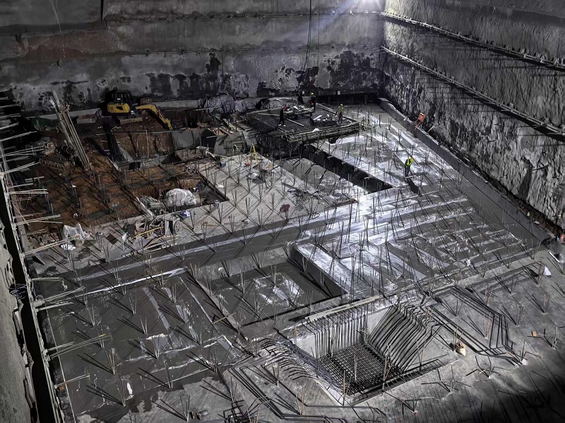 嚴(yán)絲合縫保質(zhì)量。在地下室防水施工區(qū),防水卷材鋪設(shè)同步全速推進(jìn)。施工班組采用“濕粘法”及“熱熔法”工藝,重點(diǎn)把控陰陽(yáng)角、后澆帶等關(guān)鍵部位,實(shí)施“鋪設(shè)-檢測(cè)-復(fù)驗(yàn)”閉環(huán)管理。項(xiàng)目總工帶隊(duì)開(kāi)展夜間巡查,“必須要確保零空鼓、無(wú)滲漏,以‘毫米級(jí)’標(biāo)準(zhǔn)筑牢防水屏障,為建筑穿上‘金鐘罩’。”