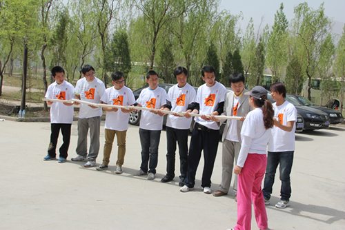 表彰大會(huì)結(jié)束后,素質(zhì)拓展訓(xùn)練活動(dòng)正式啟動(dòng)“開營”儀式。初到訓(xùn)練場地,頓覺天朗氣清,清晨的濃霧還游離在濃綠色的山上,風(fēng)過便是一陣涼爽。團(tuán)員們在這樣的環(huán)境下對訓(xùn)練也頗增了幾分信心。開班前,教練讓大家進(jìn)行了“愛的鼓勵(lì)”等一系列的歡快活動(dòng),旨在打破人與人之間的隔閡,建立相互信任的基礎(chǔ),營造團(tuán)隊(duì)快樂和諧的氛圍。